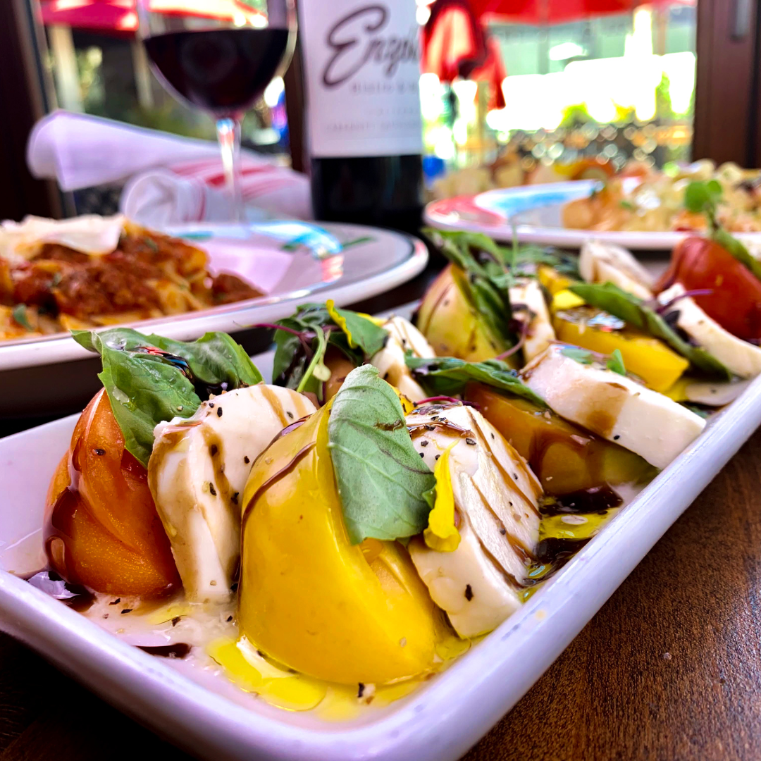 fresh mozzarella, Roma tomato, basil, with herbed oil and vinegar