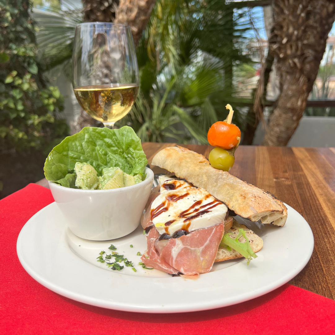 Indulge in a scrumptious lunch at our lovely patio or dining room, featuring everything from paninis to pizzas!